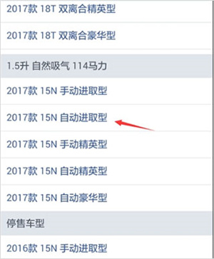 在选定对应的品牌车型之后,接着挑选该车型的不同版本来开展对比。
