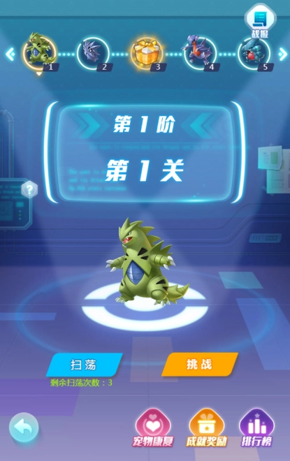 玩家每日仅能挑战精灵塔1次,若所有宠物在战斗后均无法继续作战,则需次日才能再次挑战。精灵塔的每一层都设有对应的奖励,只有挑战胜利后,方可进入下一层。此外,每日还会提供一定次数的扫荡机会,对已通关的精灵塔进行扫荡,即可获取相应的扫荡奖励。
