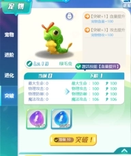 升级:通过消耗道具,可以对选中的宠物进行升级