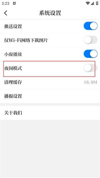 进入【系统设置】页面后,找到【夜间模式】对应的开关选项,此功能可将界面切换为更柔和的夜间显示样式。