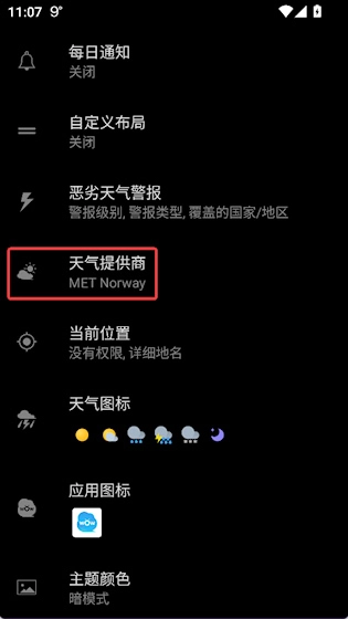 找到【天气提供商】,点击进入