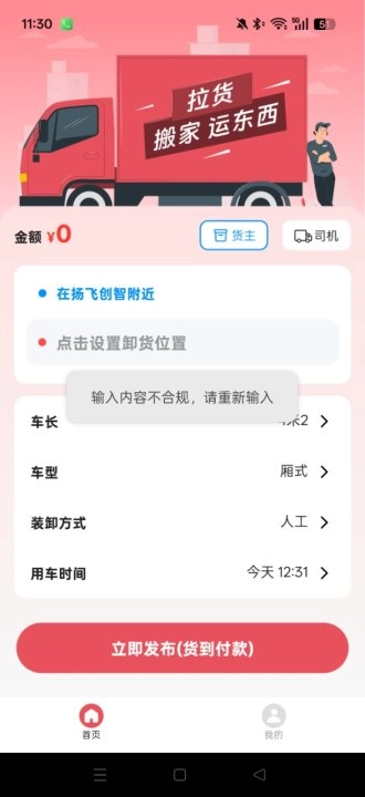 货物的起始地和目的地需严格按照平台规则上传,否则将无法成功发布送货需求。
