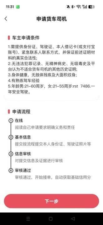 完整阅读查看申请货车司机的入驻条件文字规则。