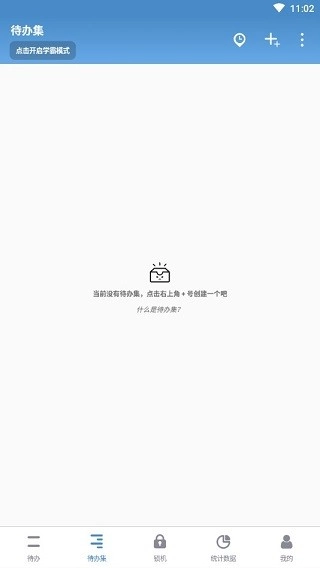 点击界面下方的待办集,即可切换到“待办集”界面。在该界面中,你可以创建新的待办集,用于添加所有待办事项的计时。此外,待办集的删除操作同样通过长按来完成。