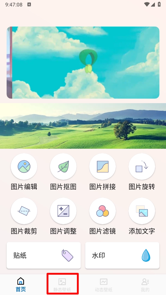 打开精灵墙纸,在主页点击"静态壁纸"进入。