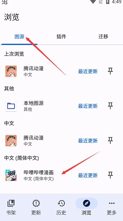 完成安装后回到页面,切换至“图源”板块,点击已安装的插件进入。