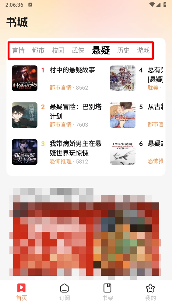 最后进入书架板块,滑动就可以查看刚才订阅的小说。