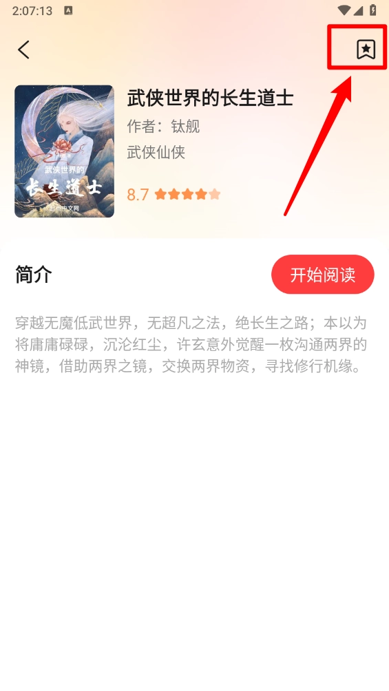 然后进入小说详情页,点击右上角箭头所指图标。