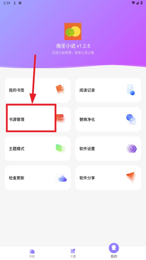 然后在我的页面点击"书源管理"。