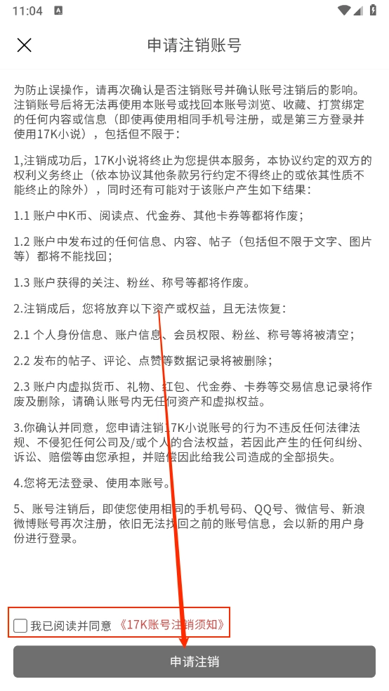 查看并勾选相关注销须知,点击“申请注销”按钮,按照提示操作就能完成注销流程。