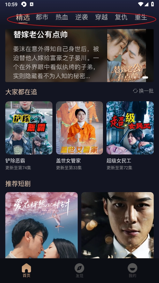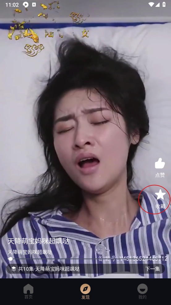 在“发现”板块,上下滑动就能切换短剧,也可以点击收藏,这样下次观看会更方便。