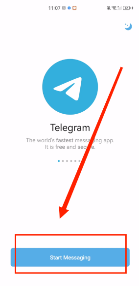 打开telegeram软件后,直接点击“Start Messaging”按钮就能进入下一步操作。