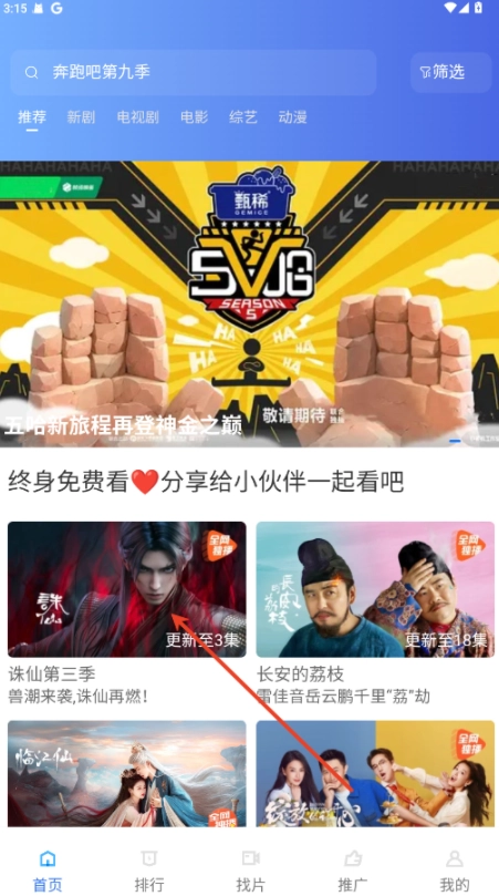 打开软件,在首页上方搜索,或直接选择投屏的影视。