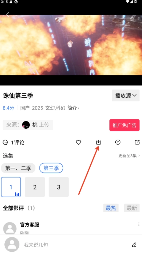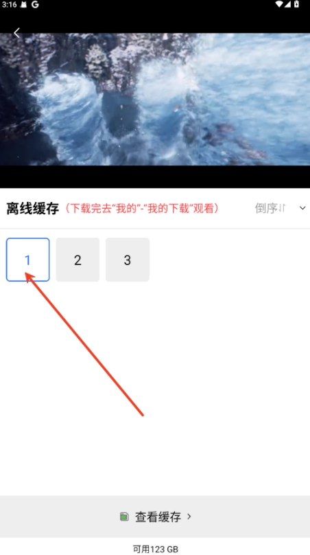 进入播放详情页,点击""图标。