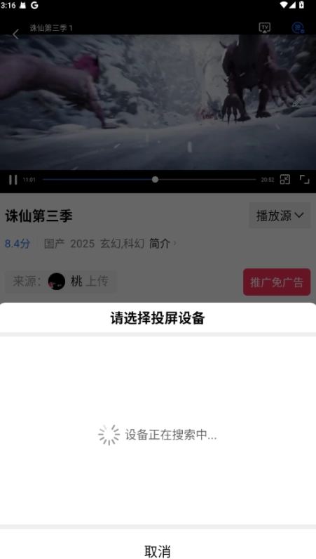 彩虹视频怎么投屏
