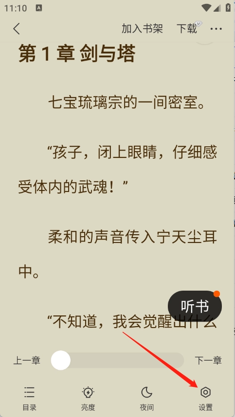 用户打开想看的小说进入详情页后,轻点屏幕任意区域即可调出菜单栏。