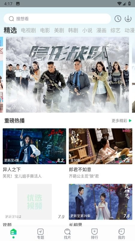 进入播放页面的步骤如下:先在本站安装并打开优选视频应用,然后找到你想看的电视剧。