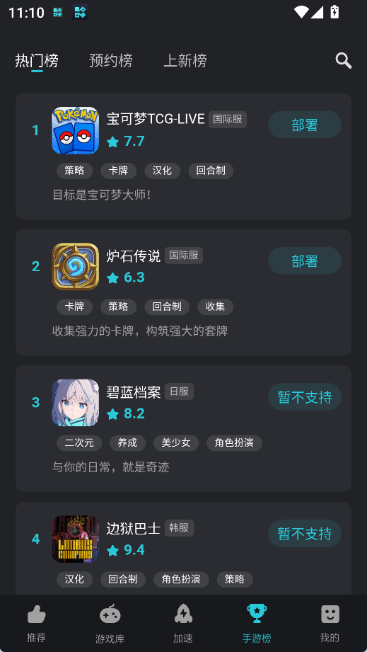 挑选游戏:接着就能在主界面浏览并挑选你想玩的游戏,像炉石传说这类。
