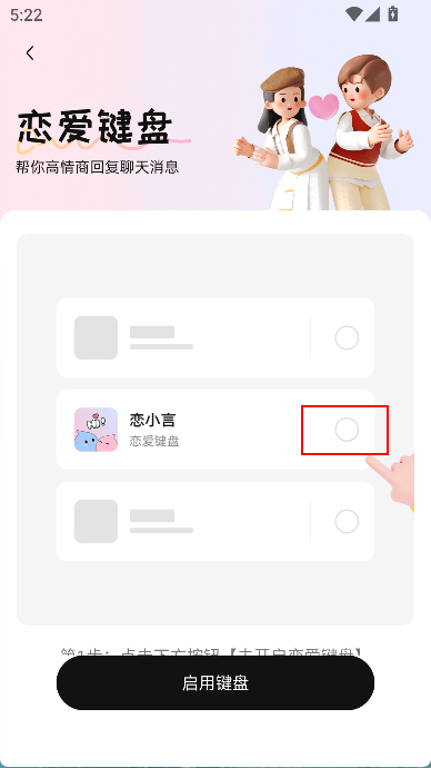 启用恋爱键盘即可帮你高情商回复聊天消息