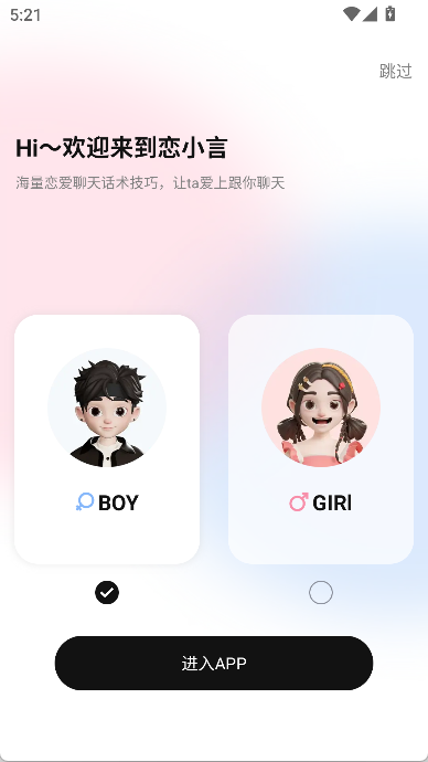 首次打开时需要选择性别。若为男孩,选择“boy”;若为女孩,选择“girl”。