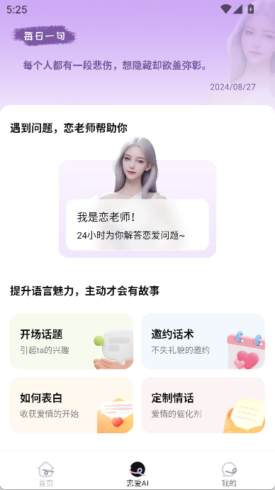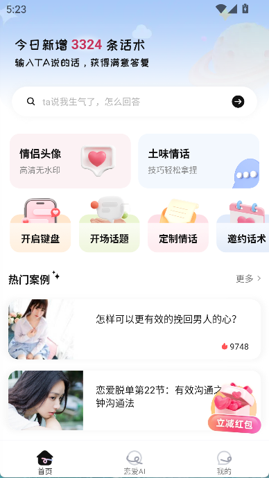 启用后进入首页,就能体验开启键盘、开场话题、定制情话和邀约话术的功能了。