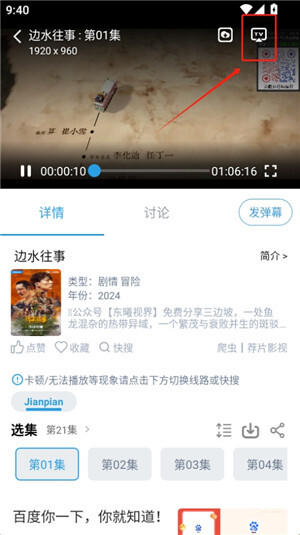 点击右上角的投屏