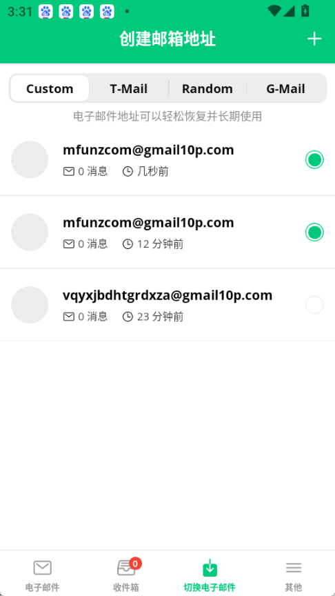 临时邮箱工具InstantMail,无需注册登录即可生成临时邮箱,支持创建无限数量的邮箱账号,方便我们自由收发邮件,同时轻松管理多个邮箱。此外,它还具备智能分类、重要邮件提醒等实用功能,让邮件管理更高效便捷,十分好用,强烈推荐给大家。