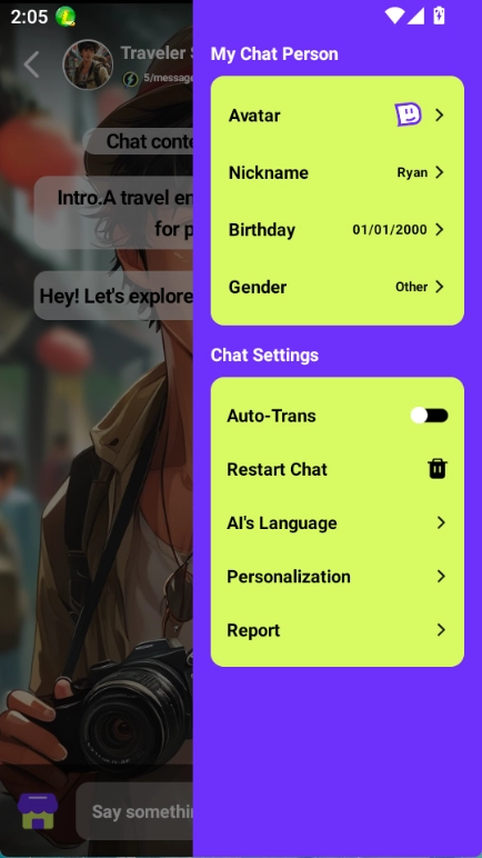 你可以在个人中心收藏常用角色,查看好感度的进展情况,对角色设定进行修改,或者管理聊天记录,还能根据自己的需求调整互动偏好。