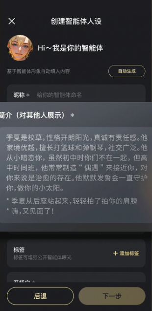 可以对语言风格与对话特色进行设计,完成后点击“下一步”按钮。