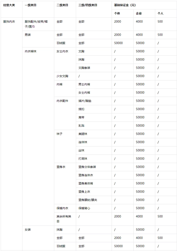 - ?依据商品所属的类目以及店铺的类型,能够查询到需缴纳的基础保证金