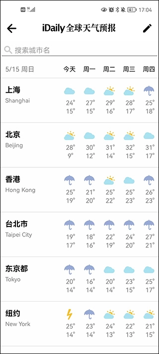 打开软件进入首页后,点击右上角的天气功能,用户便能在这里随时随地查看全球各地的天气状况。