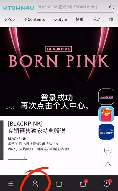 打开k4town中文版软件后,进入个人中心页面完成登录操作。
