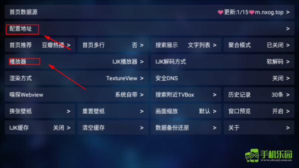 在设置内容中调整播放地址以及播放器的播放行驶。