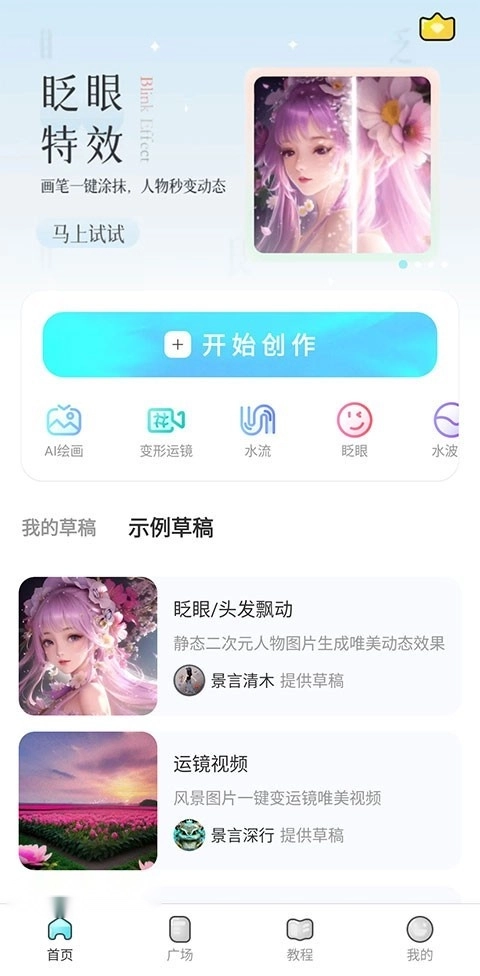 接着进入首页,能看到不少热门特效,点击“开始创作”就可以了。