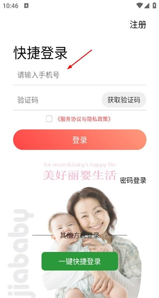进入登录界面后,先查看有哪些登录方式可选,接着点击手机号登录或注册对应的区域,就能进入快捷登录的操作界面了。
