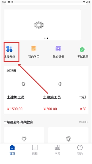 点击【课程分类】选项后就能进入课程分类界面,在这里可以浏览不同专业类别的培训课程,以便为后续选课做好准备。