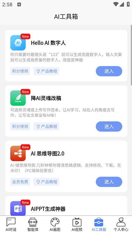 - AI视频:图片和视频创作功能。