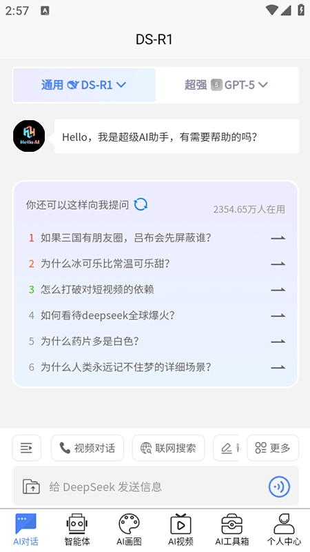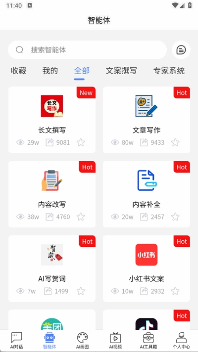 点击“智能体”选项,根据需求选择专用AI模型。