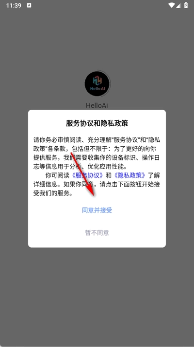 打开软件后,需阅读并同意用户协议与隐私政策。
