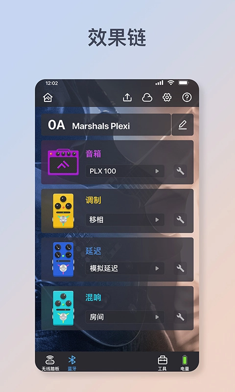 进入设备界面后,点击“搜索设备”按钮,就能查找并连接智能吉他以及其他Flamma品牌的设备。