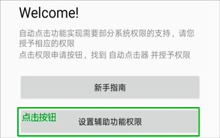 打开自动连点器应用,找到“设置辅助功能权限”这一选项,然后点击进入该选项页面。