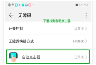 进入系统设置界面后,找到“自动点击器”功能选项,点击进入该功能页面,然后选择开启它。