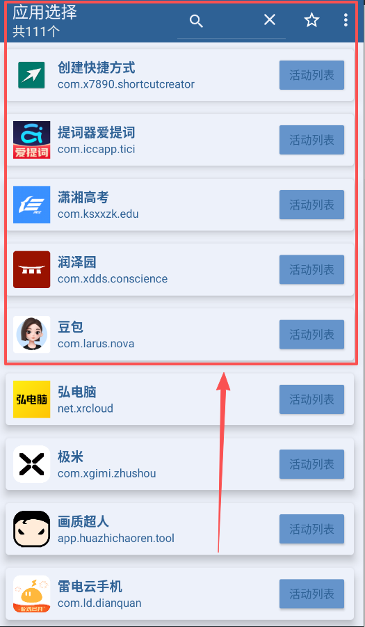 二、进入并选择具体活动。点击应用条目下方的“活动列表”,你就能看到该应用中所有可以创建快捷方式的活动。