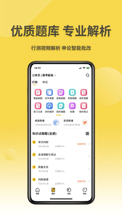 借助专业的直播课程体系,用户能够对公共基础知识、行测、申论及面试等科目展开系统性学习。
