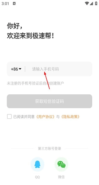 进入登录界面后,能看到手机号输入框以及QQ、微信的登录选项,通过填写相关信息即可完成账号登录流程。