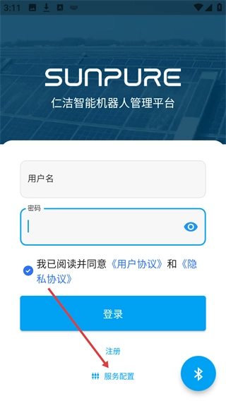 在登录页面点击【服务配置】选项,进入服务站点选择界面,即可对平台的服务地址进行配置。