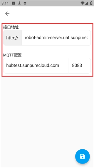 在服务配置页面选中【自定义】选项,即可进入接口地址与MQTT配置的编辑界面。