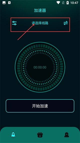 在【加速器】页面,点击顶部的【请选择线路】区域,就能进入线路选择界面,选好线路后再点击【开始加速】按钮启用加速。