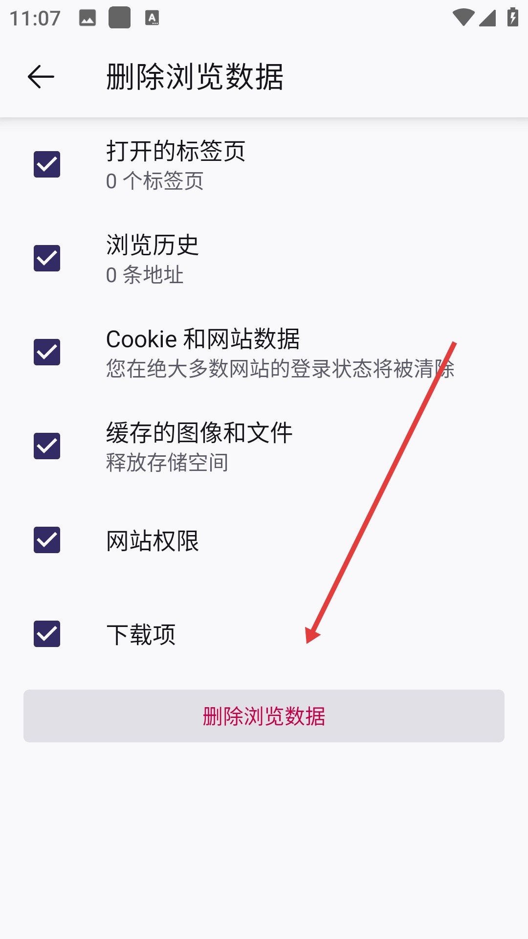 4、进入删除浏览数据页面后,点击【删除浏览数据】按钮,即可完成浏览数据的删除操作。
