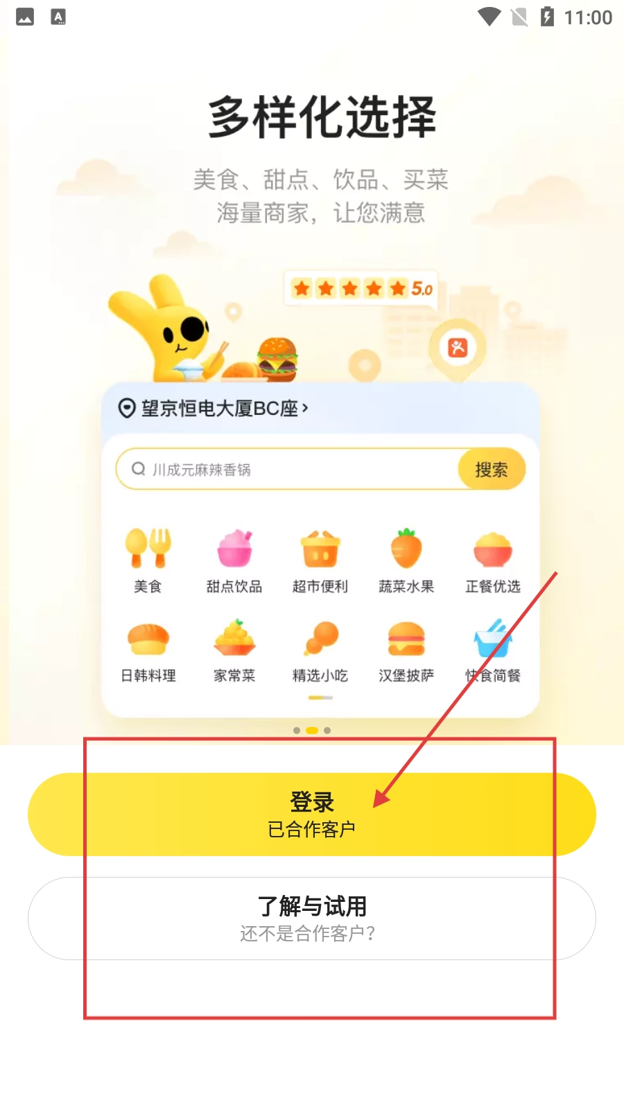 2、进入选择界面后,点击【登录】按钮,即可跳转至美团企业版的登录页面。